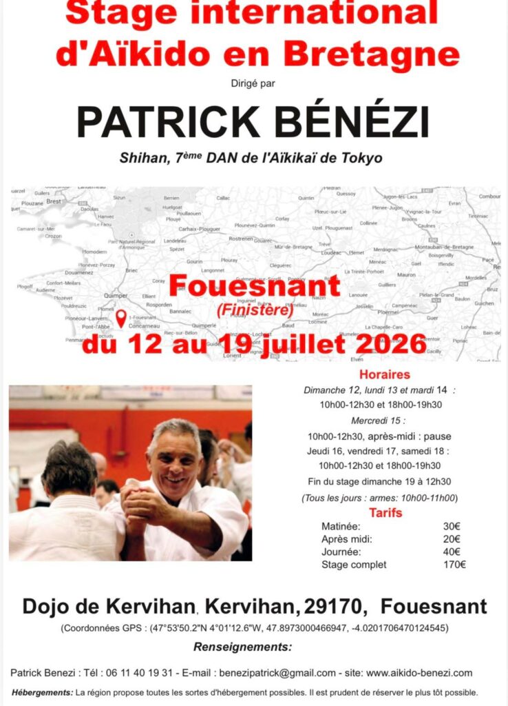 Stage International avec Patrick BENEZI Shihan / Actualité SAM Aïkido / Par admin du 12 au 19 juillet 2026 à Fouesnant